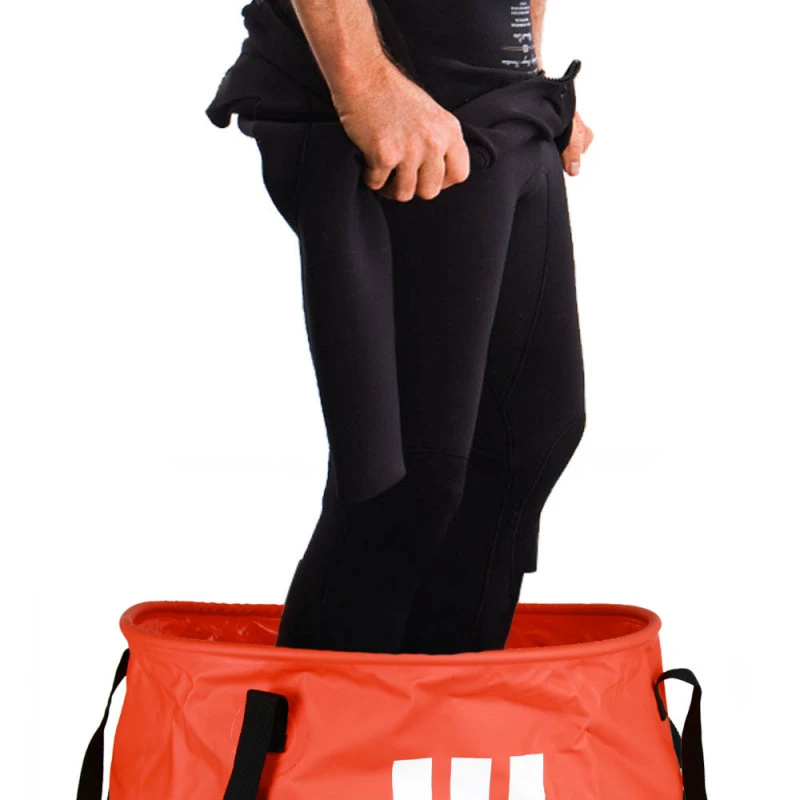 Le bucket étanche à combinaison Howzit s’utilise comme un tapis de sol pour vous changer mais aussi de sac étanche pour transporter votre combinaison. Facile à ranger, il prend la forme d’un seau de plage et ne prend pas de place au stockage. Il trouvera toujours une place dans le coffre de la voiture.