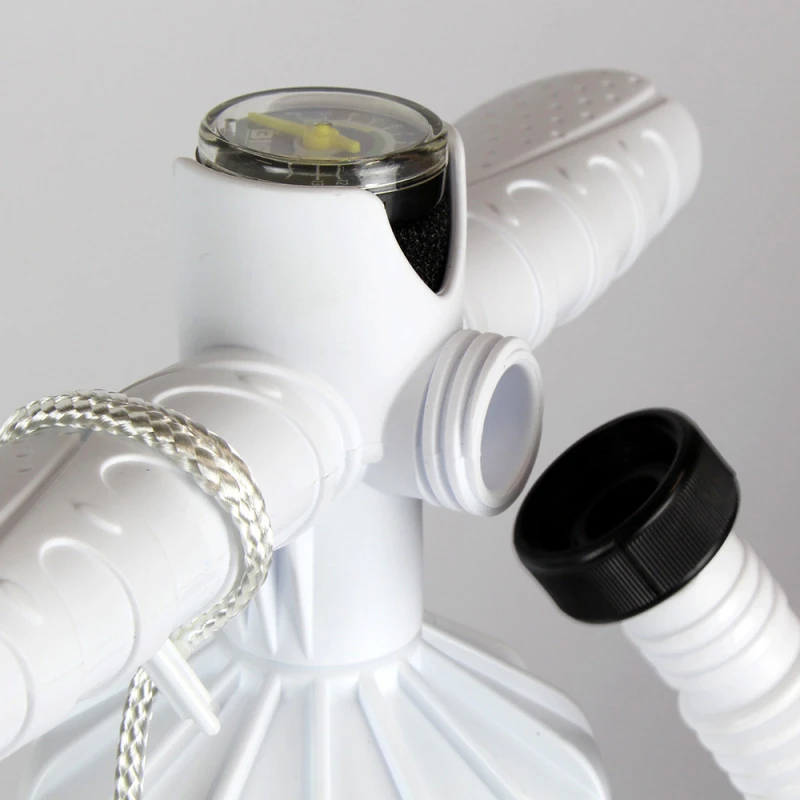 La THE BIG est livré avec 6 embouts universels, ce qui offre une modularité complète pour un gonflage de la plupart des valves sur le marché. Ces embouts sont imperdables, ils sont attachés avec le tuyau.