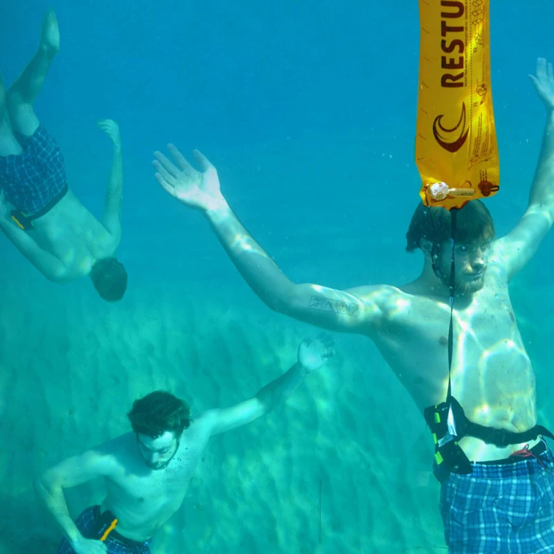 Suite à une galère en mer, le fondateur de l’équipe RESTUBE se met à la recherche d’un système de sauvetage personnel, autonome et compact :  RESTUBE était né !