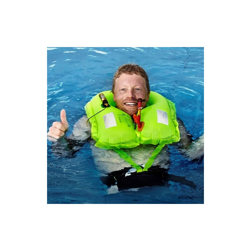 Le système de sauvetage Secumar Free 100 a été développé pour tous les pratiquants de sports de glisse nautique ou pour ceux qui nagent régulièrement. Portée à la ceinture, cette poche renferme une enveloppe gonflable minutieusement pliée. Elle ne gêne pas lors de la nage ou du sport pratiqué. En cas de situation d’urgence, il suffit de sortir l’enveloppe gonflable hors de la poche au-devant du torse et de l’enfiler ensuite facilement par-dessus la tête. La cartouche de CO2 est activée par déclenchement manuel et permet de gonfler rapidement l‘enveloppe gonflable. La flottabilité générée permet de stabiliser la personne en difficulté, sa tête maintenue au-dessus de la surface l’eau. Le Secumar Free 100 est un excellent système de sauvetage pour les activités de nages en eau libre et pour les sports de glisse nautique.